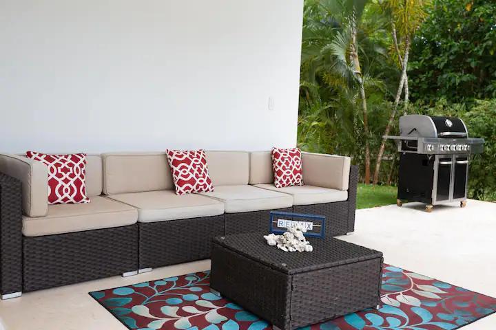 BBQ, 2 chaise longues p/ adultos y 1 p/ niño. Juego de mueble 3 plazas, 2 asientos individuales y mesita.