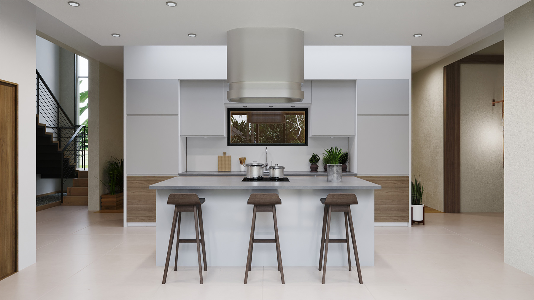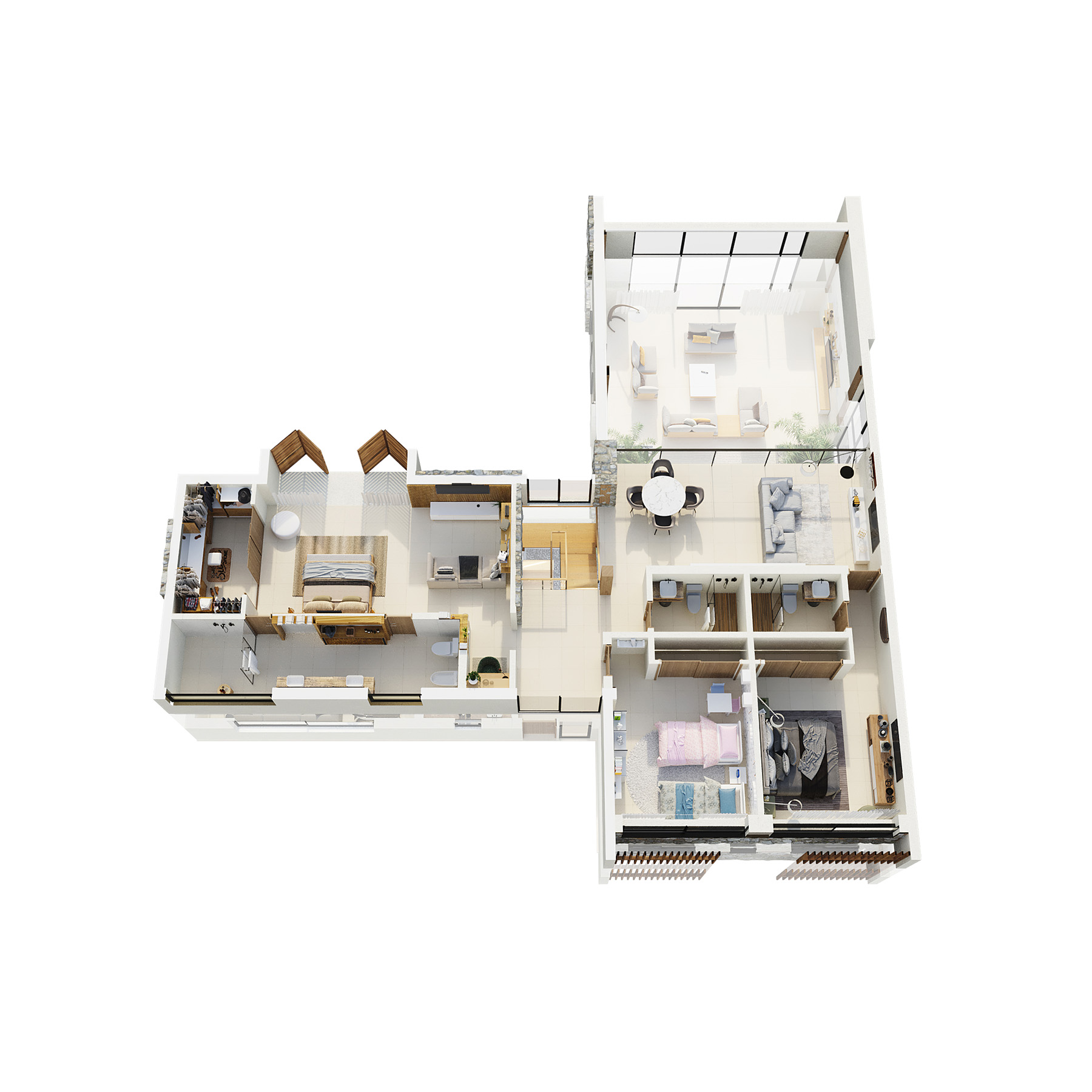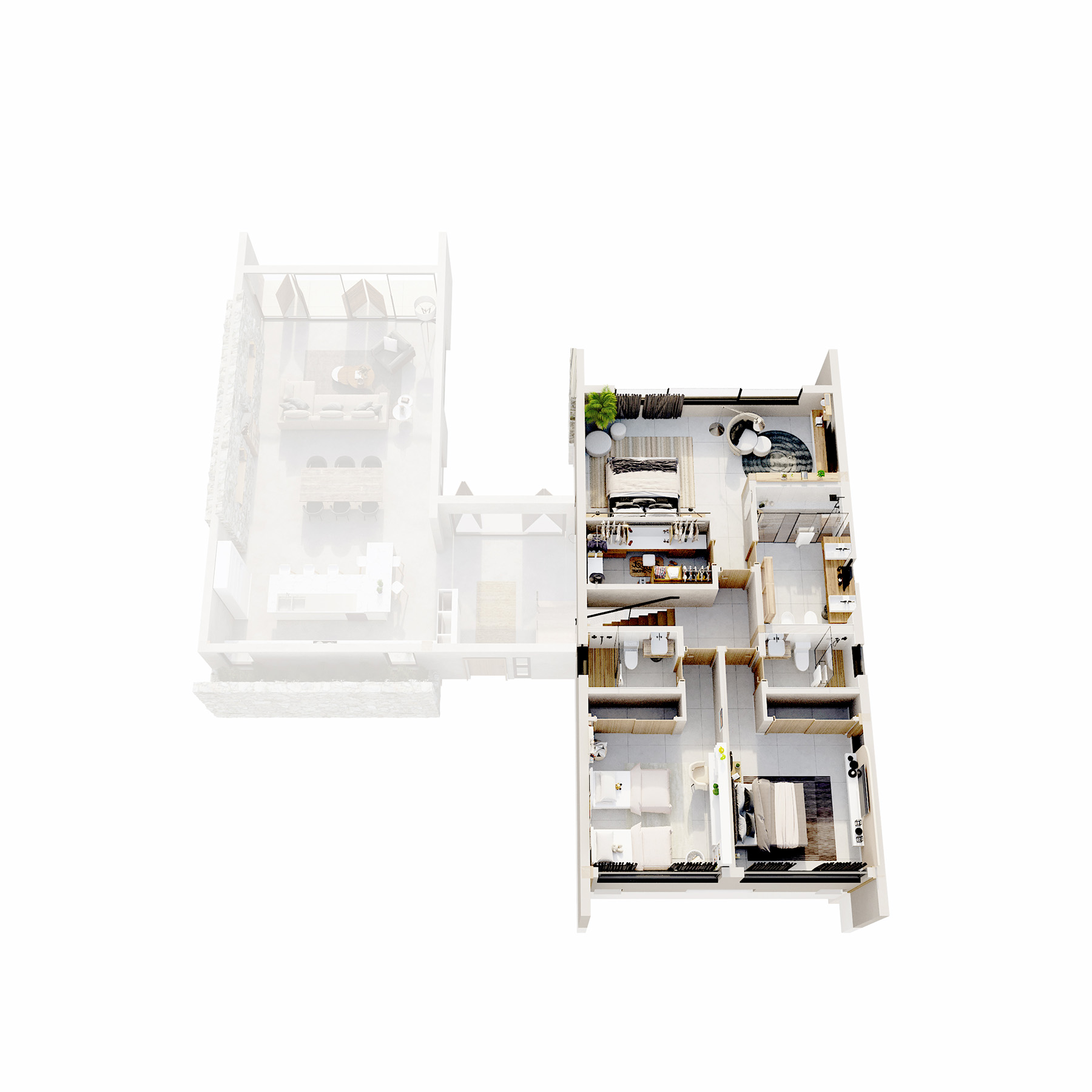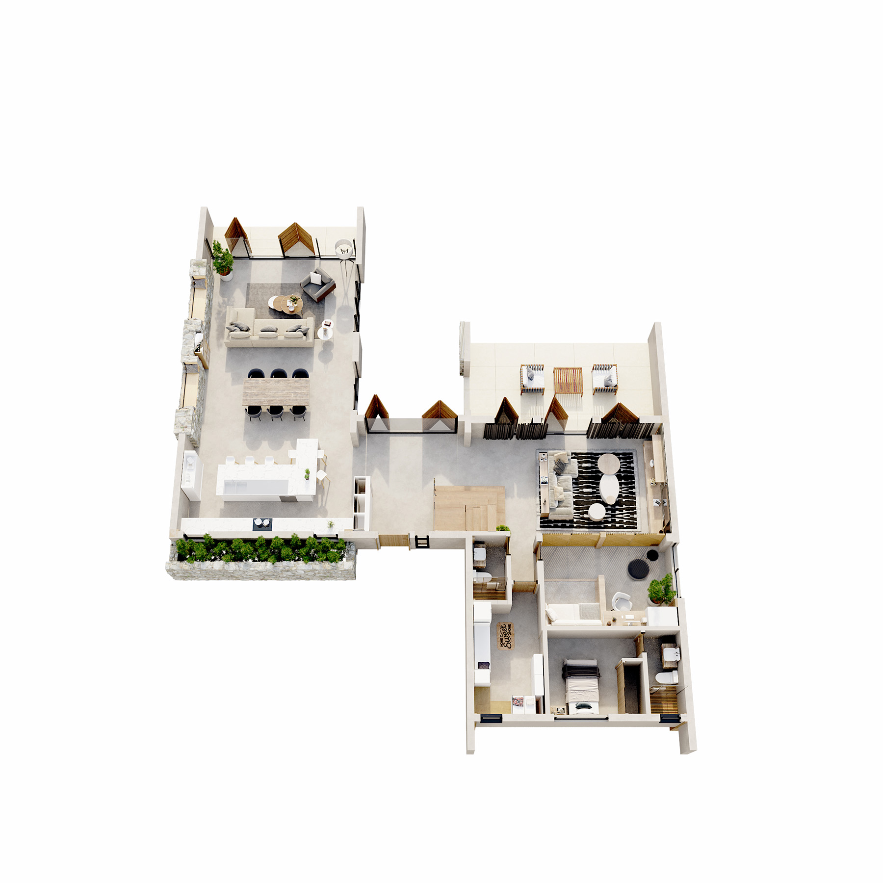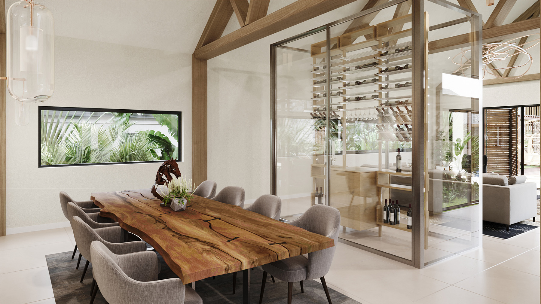 Architecture and orientation of the villas are adapted to the movements of the sun to avoid heating of facades and glass, and to maximize energy use with solar panels.